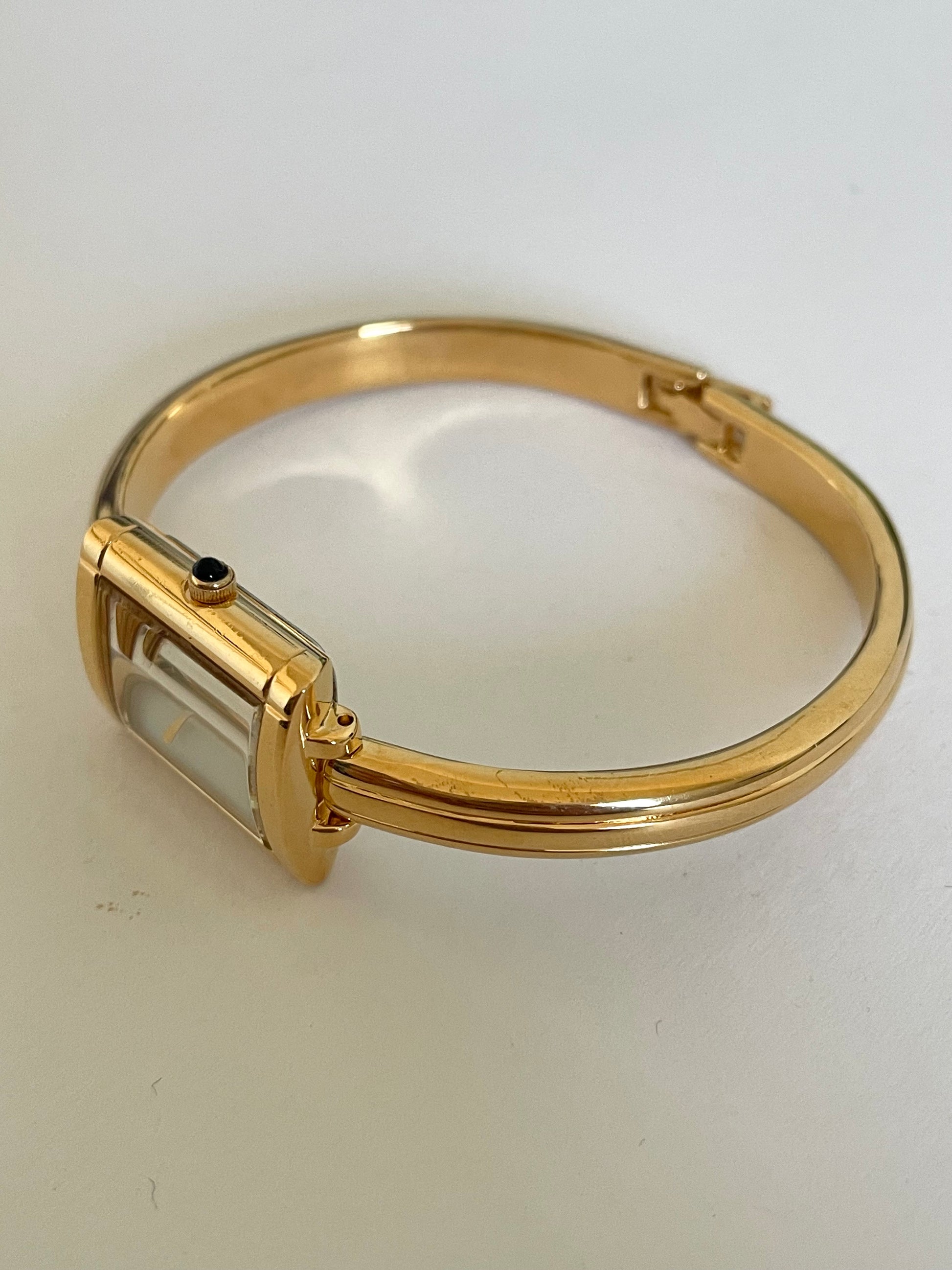 Vintage Yves Saint Laurent Bangle Watch – Gold Plated, Mother of Pearl Dial, YSL Rare Piece