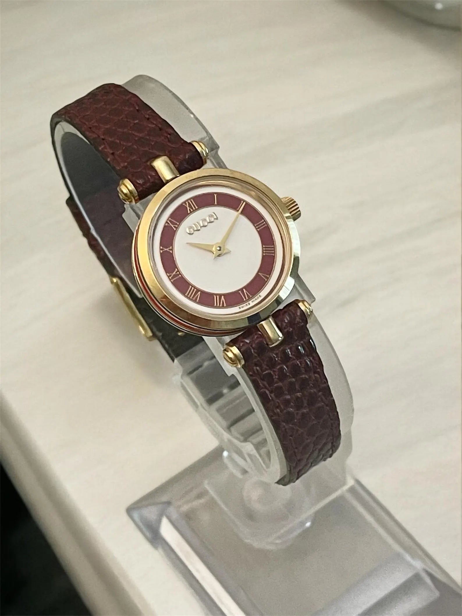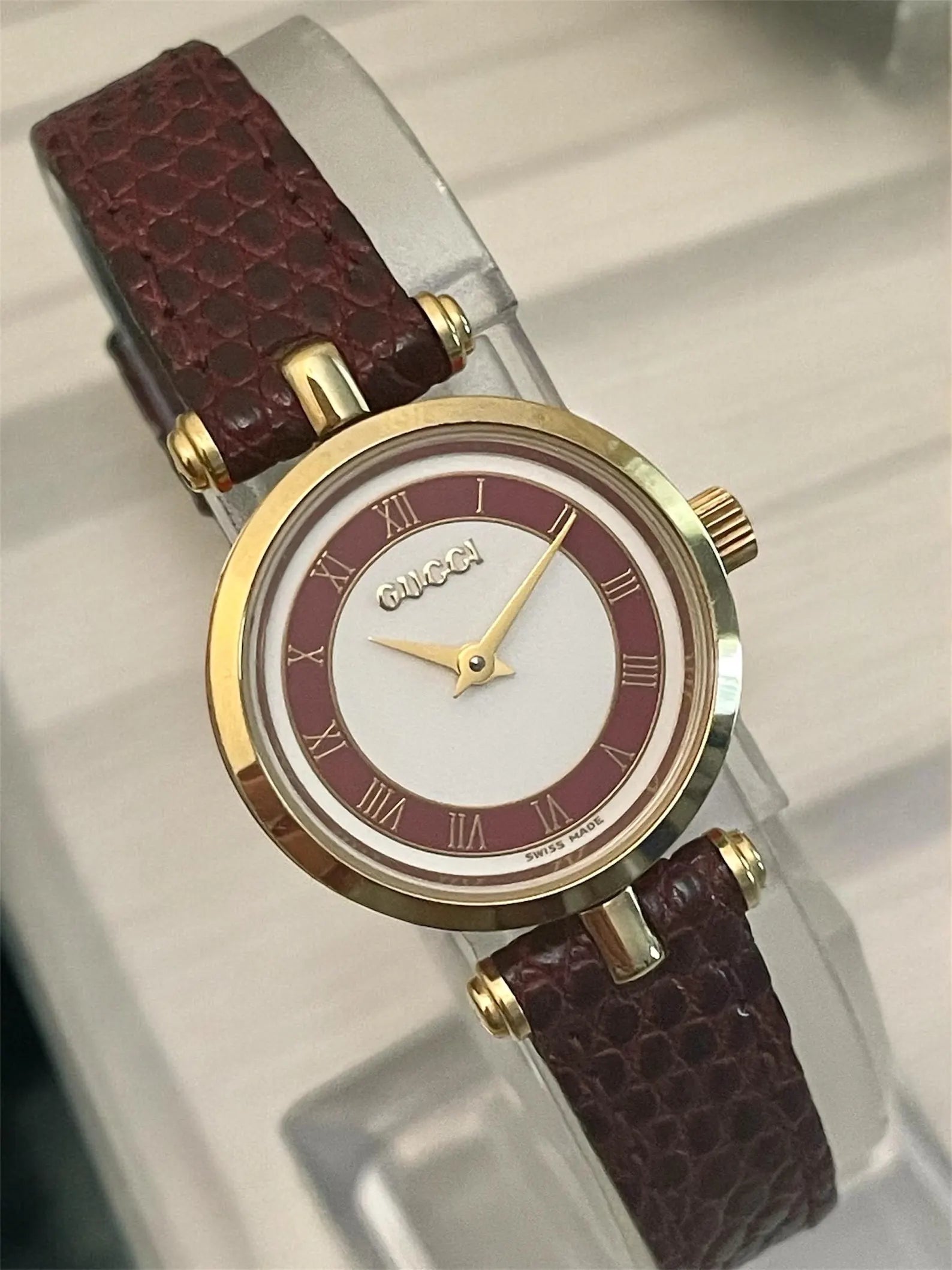 - Authentic Vintage Gucci Ladies Watch Shelly Line Burgundy Red